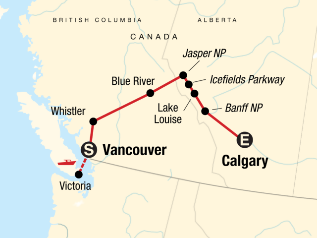 Your Wellness Moment: Miette Hot Springs Visit, Jasper National Park. All park fees in Jasper and Banff National Parks. Scenic ferry to Vancouver Island. Vancouver, Calgary, Victoria, Whistler, and Banff orientation walks. Stops at Seton Lake and Kamloops Lake. Athabasca river wildlife float. Mount Robson Visitor Centre stop. Excursion to the Columbia Icefields and ice walk on the Athabasca Glacier. All transport between destinations and to/from included activities.